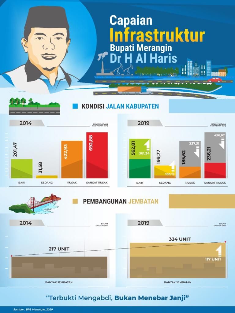 Selain itu, Al Haris yang didamping wakilnya, Mashuri, juga mencapai progres cukup baik di bidang infrastruktur. Meski keterbatasan APBD, namun perkembangan infrastruktur di Merangin sangat dirasa masyarakat setempat.