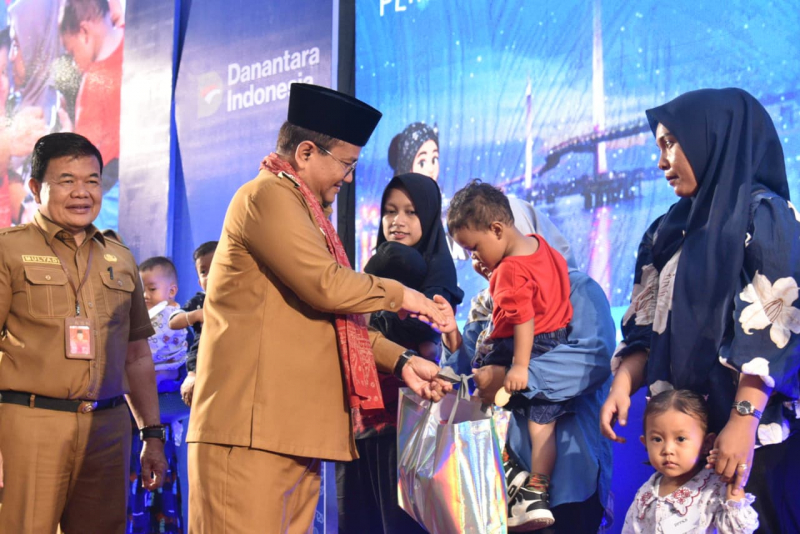 Penyerahan bantuan ini dilakukan di Maulidia Convention Center, Kelurahan Pematang Sulur, Kecamatan Telanaipura, Kota Jambi. Terdiri dari protein, susu, telur, dan sembako, dengan menggandeng Permodalan Nasional Madani (PNM) cabang Jambi dalam rangka kegiatan PKU Akbar 2025.