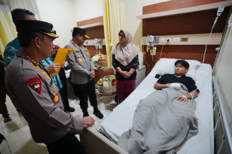 RADARJAMBI.CO.ID - JAKARTA, Kapolri Jenderal Polisi Listyo Sigit Prabowo mengunjungi para korban ledakan di SMAN 72 Kelapa Gading, Jakarta yang kini dirawat di Rumah Sakit Islam (RSI) Cempaka Putih Jakarta, Sabtu (8/11/2025). Listyo datang didampingi oleh Kapolda Metro Jaya Irjen Pol Asep Edi Suheri dan Kapolres Metro Jakarta Pusat Kombes Polisi Susatyo Purnomo Condro.