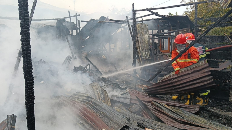 Personel Damkartan kota Jambi Padamkan Api yang Lahap 7 Unit Rumah