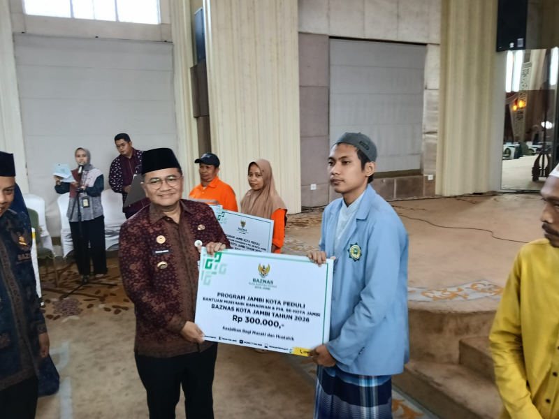 Dalam rangkaian kegiatan tersebut, turut dilakukan penyerahan santunan kebakaran kepada 10 Kepala Keluarga di kota Jambi oleh BAZNAS Kota Jambi dengan jumlah bantuan sebesar Rp. 102.000.000,- melalui program Jambi Kota Peduli Tahun 1447 H/2026 bertepatan dengan 23 Ramadhan 1447 Hijriah.