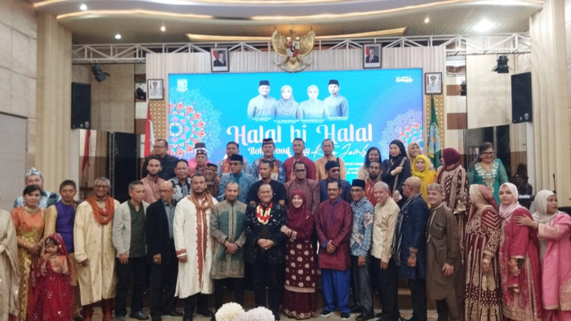 Radarjambi.Co.Id - Sebagai wujud toleransi kerukunan antar etnis dan budaya di Tanah Pilih Pusako Betuah, Wali Kota Jambi, Dr. dr. H. Maulana, M.K.M, bersama Ketua TP PKK Kota Jambi, Dr. dr. Hj. Nadiyah, Sp,.OG, hadiri Halal bi Halal Bollywood Day Kota Jambi yang berlangsung di Aula Griya Mayang, Rumah Dinas Wali Kota Jambi, Minggu malam (19/04/2026).