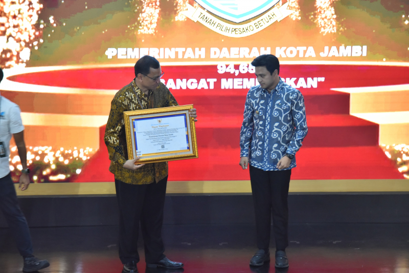 Penghargaan dalam bentuk sertifikat piagam dari Arsip Nasional Republik Indonesia ini diterima Wakil Wali Kota Jambi Diza Hazra Aljosha, S.E., M.A, yang diserahkan langsung oleh Kepala ANRI Dr. Mego Pinandito, M.Eng.