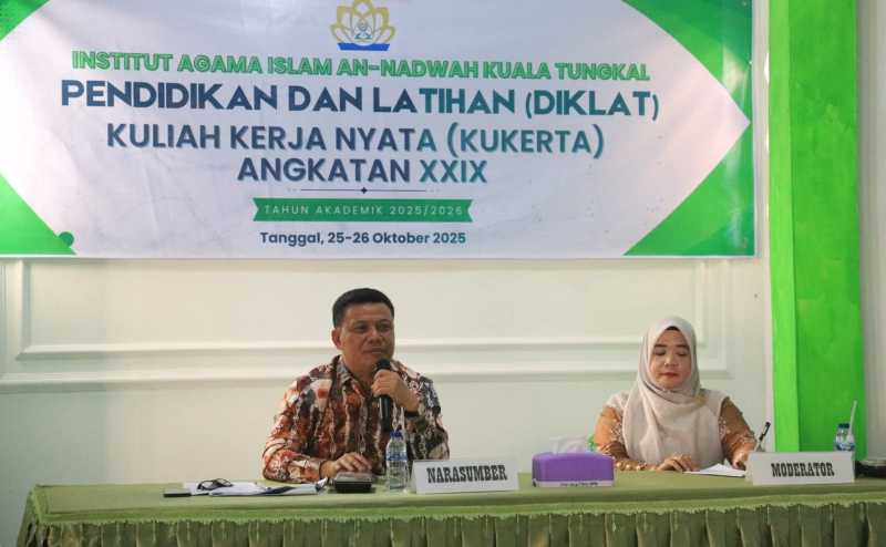 RADARJAMBI.CO.ID,TANJABBAR – Wakil Bupati Tanjung Jabung Barat, Dr. H. Katamso, SA, S.E., M.E., memberikan materi diklat ringkas kepada 304 mahasiswa/i Institut Agama Islam An-Nadwah Kuala Tungkal yang akan mengikuti Kuliah Kerja Nyata (Kukerta) Tahun 2025 di Kabupaten Tanjung Jabung Barat. Kegiatan ini berlangsung di Ruang Aula IAI An-Nadwah Kuala Tungkal, Minggu (26/10).