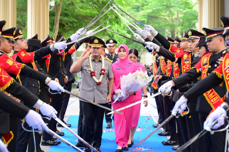 Momen pelepasan berlangsung khidmat dan penuh rasa kekeluargaan. Tradisi pedang pora mengiringi langkah Brigjen Pol M. Mustaqim saat berpamitan dengan seluruh jajaran Polda Jambi, sebagai bentuk penghormatan atas pengabdian dan dedikasinya.